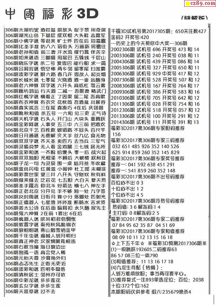 > 杀手+鑫马快报+字迷汇总25年306期3d图谜